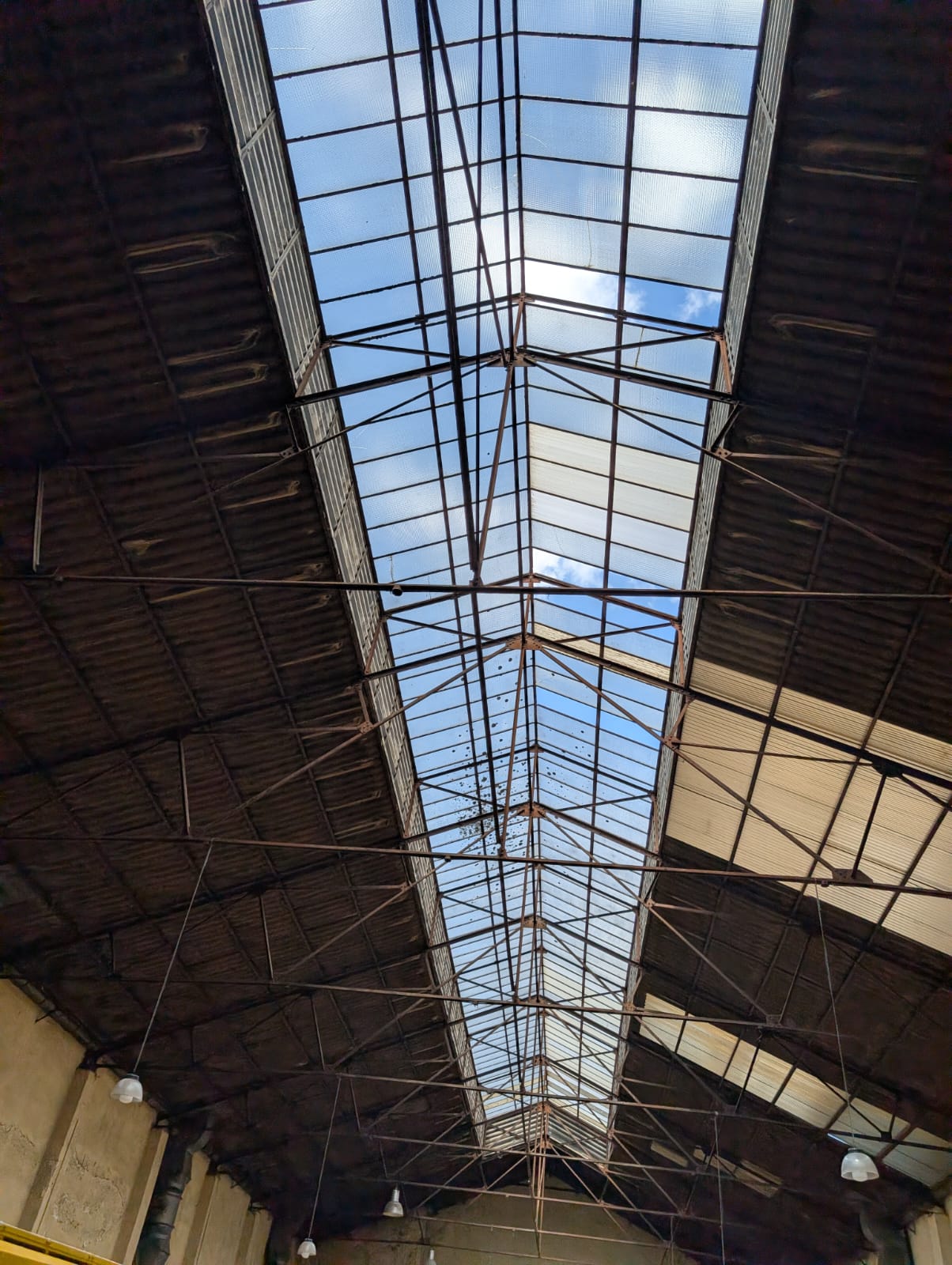 Techo a dos aguas con aperturas para iluminación natural.