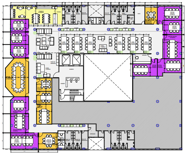 – Cielorraso termo acústicos de placas modulares tipo armstrong con artefactos de iluminación embutidos tipo LED.